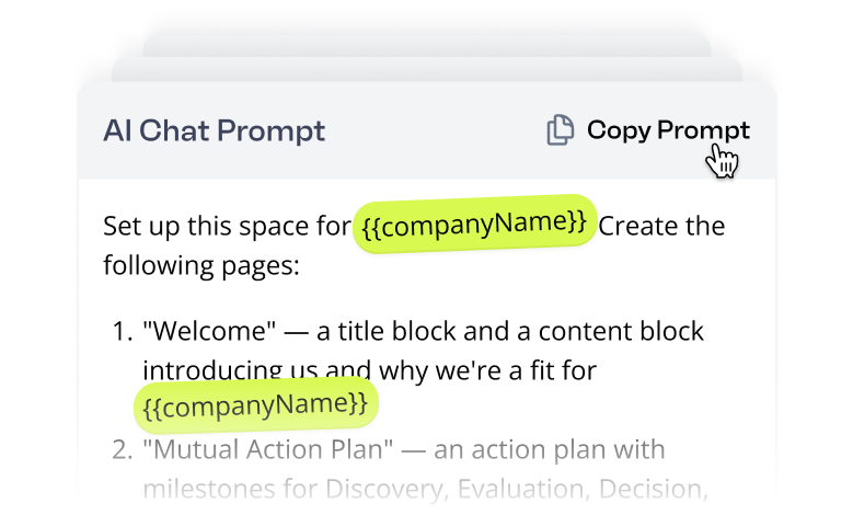 Copy a prompt, paste it into the Valuecase AI agent chat, and get results in seconds