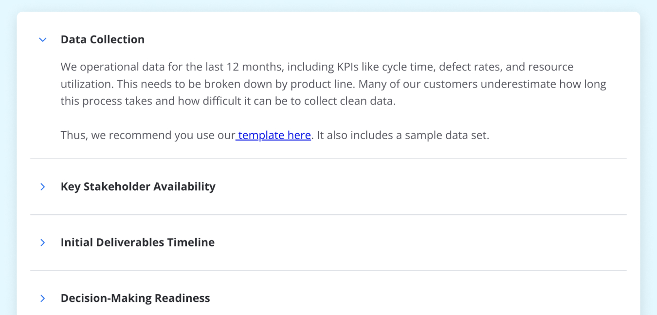 While templates help at scale, rigidity will disengage customers. Don’t be afraid to adapt your template during the onboarding process.